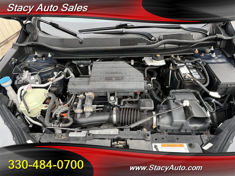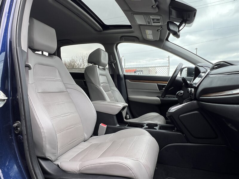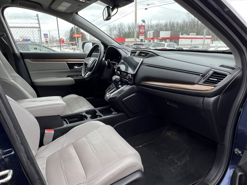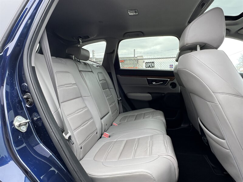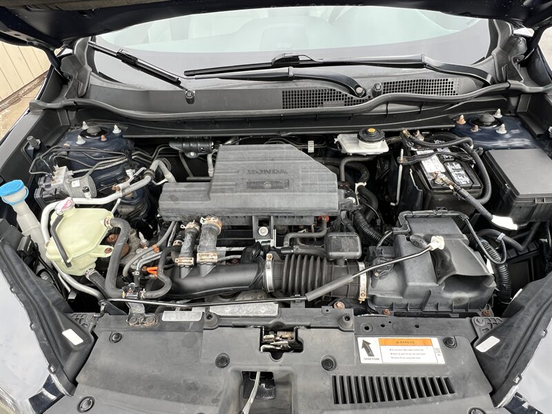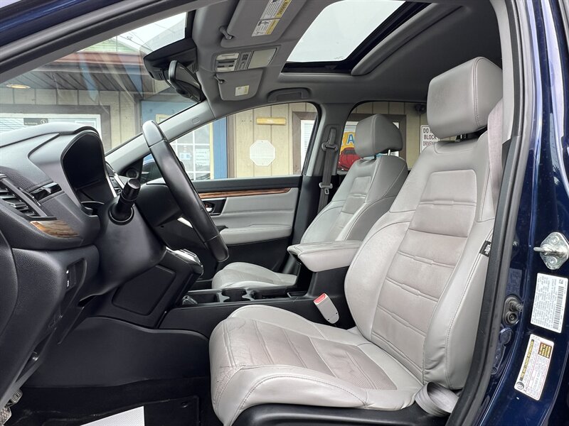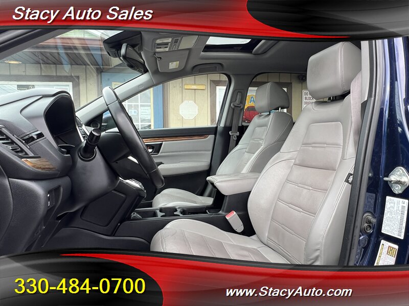 2017 Honda CR-V EX-L — Obsidian Blue Pearl exterior with a Black leather-trimmed interior. This CR-V is powered by a 1.5L turbocharged inline-4 producing 190 hp and 179 lb-ft of torque, paired with a continuously variable transmission (CVT). EPA fuel economy is an estimated 27 MPG city and 33 MPG highway. The vehicle is in excellent overall condition.